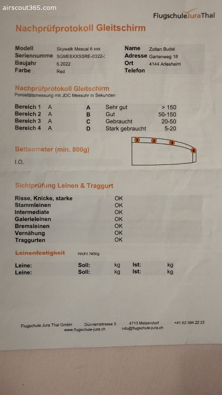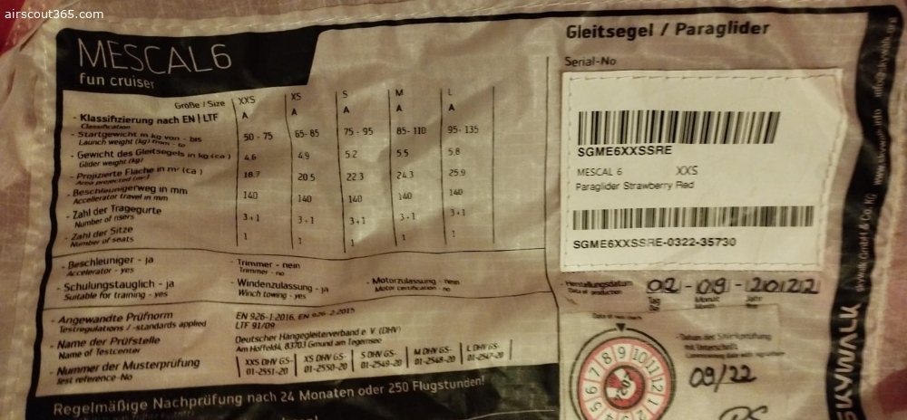 Versand nach Deutschland, Schweiz, Österreich, Italien, Frankreich möglich. Laut dem letzten Nachprüfprotokoll aus 2024 befindet er sich in sehr gutem Zustand, hat keine Risse oder Knicke. Besichtigung in Arlesheim BL möglich.Der Schirm ist mit AGILITY SYSTEM versehen: https://skywalk.info/de/project/mescal6/